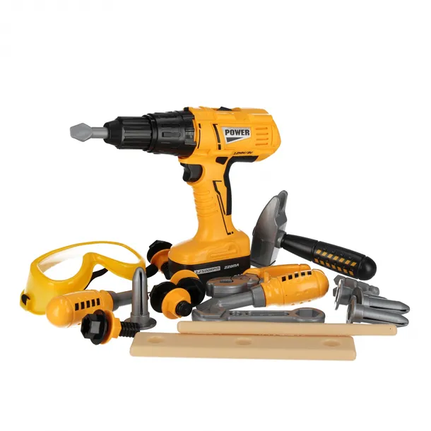 Zalety produktu: Rozwijanie wyobraźni, nauka używania narzędzi warsztatowych, rozwijanie zdolności manualnych, rozwijanie w dziecku pasji. Zestaw Narzędzi MEGA CREATIVE zainteresuje każdego fana majsterkowania. Dzięki tym narzędziom dzieci będą mogły zająć się różnymi konstrukcjami. Może w przyszłości będą naprawdę mistrzami w tym fachu? Zawartość zestawu: wiertarka 3x wiertło, 4x śrubka 4x nakrętka na śrubki, 2x deseczka duża, okulary ochronne, klucz, 2x śrubokręt, młotek. Wiertarka posiada ruchome wiertło, po włączeniu odpowiedniego przycisku wiertło obraca się w prawą bądź w lewą stronę. Wszystkie elementy wykonane z plastiku. Wymiary/waga/baterie: wymiar opakowania dł. x wys. x gł. cm : 42x28x7,, waga produktu w opakowaniu kg : 0,71 kg, wymiar produktu d. x wys. x szer. cm -wiertarka 19x19x6, waga produktu kg. 0,64 kg. Wymaga zasilania bateriami-wiertarka 2x AALR06 nie załączonymi do zestawu. Zestaw przeznaczony dla dzieci w wieku: 3 . Pakowany w kartonik z okienkiem. Pakowanie w kartonie po 12/24 szt.