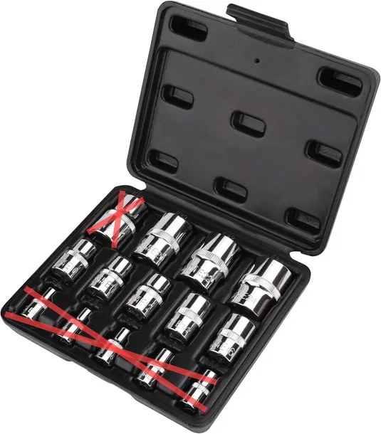 - Zawiera (5) nasadki Torx 1/4", (5) nasadki Torx 3/4" i (4) nasadki Torx 1/2"