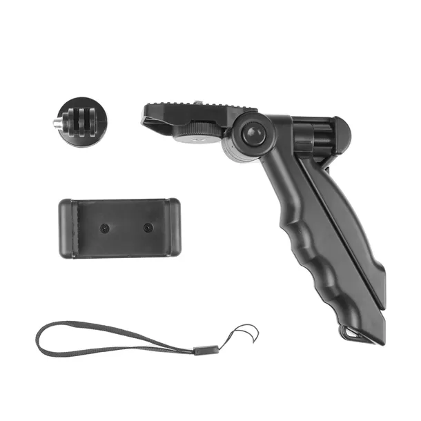 Podstawą zestawu jest kompaktowy uchwyt, pełniący równocześnie rolę statywu stołowego. Ciekawy i przemyślany projekt zapewnia uzyskanie doskonałych efektów (głównie ustabilizowanie ujęć w ruchu) z wykorzystaniem sprzętu amatorskiego i semi-pro (bezlusterkowce, kamery GoPro®, telefony komórkowe). Świetne uzupełnienie urlopowego wyposażenia, zajmuje bardzo mało miejsca i jest przy tym niezwykle przydatne i uniwersalne.