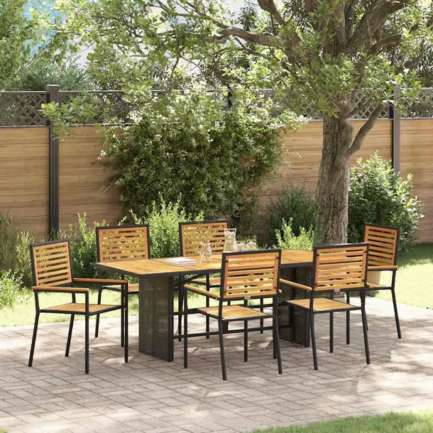 Zestaw Ogrodowy z Prostokątnym Stołem i 6 Krzesłami, Czarny, Stal i Drewno Akacjowe