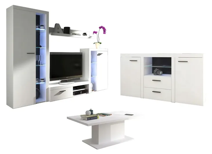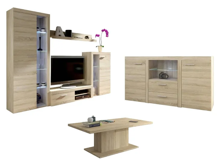 Zestaw mebli OLIMP to kolekcja zaprojektowana z myślą o nowoczesnym salonie. Mimo na pozór prostej formy, kolekcja robi wrażenie już na pierwszy rzut oka.Korpusy oraz fronty poszczególnych elementów meblowych wykonane są z płyty laminowanej 16 mm. Obecnie jest to standard na rynku europejskim, a nawet światowym. Jeśli szukasz nowoczesnej meblościanki do salonu w dobrej cenie, to warto rozważyć zestaw mebli Olimp. Zdecydowanie zajmuje miejsce na podium.