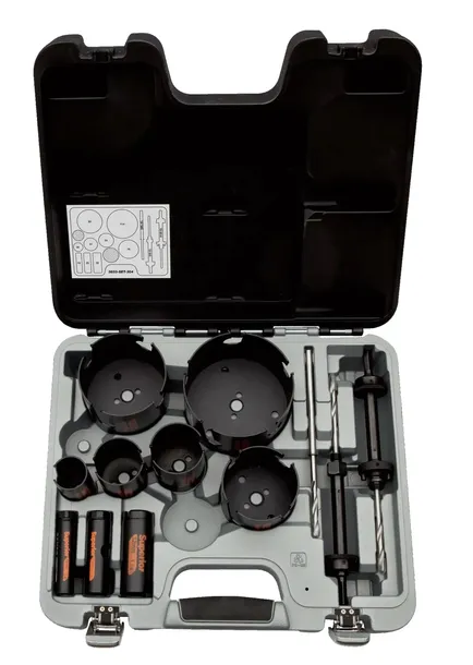 - Zestawy otwornic Superior™ obejmują najpopularniejsze rozmiary narzędzi dla cieśli, hydraulików i elektryków. _x000D_ Zestawy zawierają również uchwyt Quick-Eject.