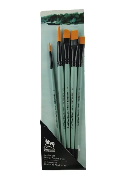 Zestaw syntetycznych pędzli Renesans z krótką rączką.