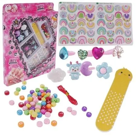 Ten zestaw urody to wspaniała i kreatywna rozrywka dla małej dziewczynki. Mała księżniczka będzie mogła samodzielnie przykleić naklejki na paznokcie lub twarz, ozdobić dłonie różnymi pierścionkami oraz wystylizować paznokcie za pomocą dołączonego delikatnego pilniczka. Zestaw zawiera: pierścionki koraliki ze sznurkiem naklejki na paznokcie pilniczek do paznokci To świetny pomysł na prezent i kreatywną zabawę w pełni. Sprawdźcie sami! Ze względu na małe elementy, zestaw przeznaczony jest dla dzieci od 5 roku życia. Wymiary opakowania: 25 cm x 2.5 cm x 20.5 cm
