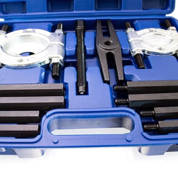 Zestaw ściągaczy do łożysk Bituxx, wykonany z kutej matrycowo i ulepszanej cieplnie stali, nadaje się do różnych prac ciągarskich. 2-calowe i 3-calowe separatory łożysk mogą być stosowane uniwersalnie. Nadaje się do usuwania łożysk, pierścieni wewnętrznych i innych ciasno pasowanych łożysk. Zestaw dostarczany jest w praktycznej i przejrzystej walizce.