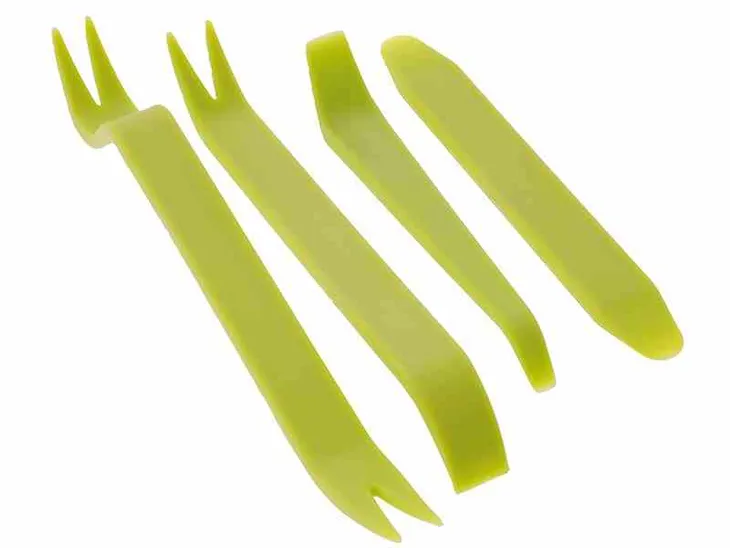 Wysokiej jakości zestaw ściągaczy niezbędnych w każdym warsztacie.Materiał wykonania ściągaczy: NYLON.Zastosowanie: Umożliwiają demontaż tapicerki bez ryzyka uszkodzenia miękkich elementów i spinek tapicerskich.W zestawie 4 ściągacze.