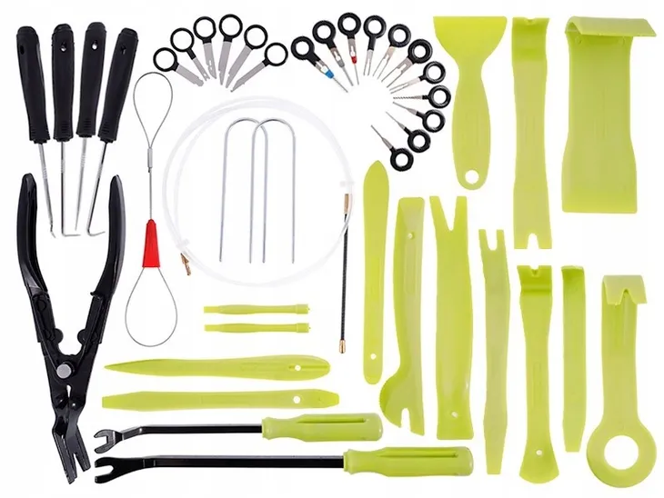 Specjalistyczny zestaw zawierający klucze i ściągacze do demontażu radia, kostek, listew, spinek i tapicerki.