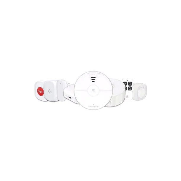 Zestaw 8 urządzeń do zabezpieczania, ochrony, wykrywania i alarmowania. Wszystkie urządzenia współpracują z innymi urządzeniami WOOX Home.