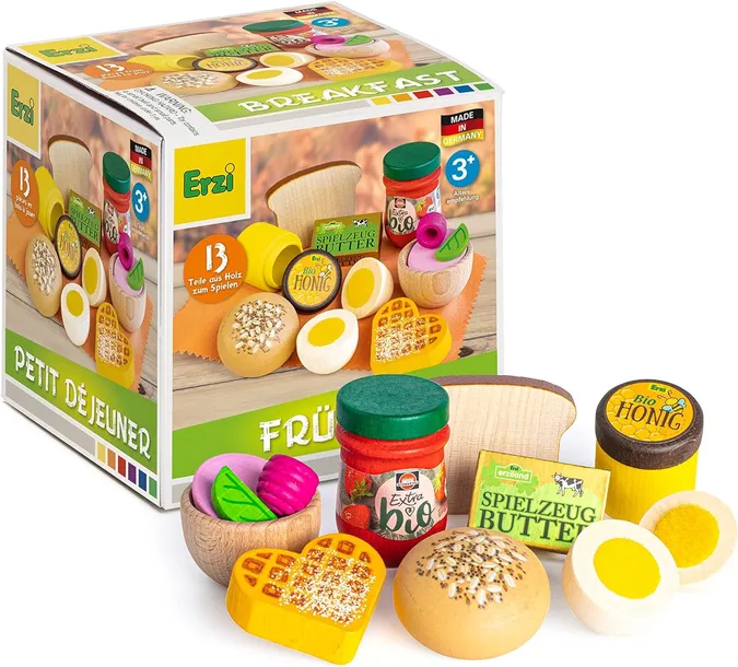 Drewniany zestaw Śniadanie marki Erzi to zaproszenie do fascynującej podróży kulinarnej. Składa się z 13 starannie wykonanych elementów, które pozwalają maluchowi wcielić się w rolę małego kucharza, przygotowującego śniadanie dla domowników czy swoich ulubionych pluszaków. Każdy element został wykonany z bezpiecznego i trwałego drewna bukowego, co gwarantuje długotrwałą przyjemność z zabawy.