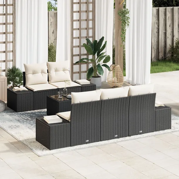 Zestaw sof ogrodowych 6-częściowy z poduszkami czarny polirattan