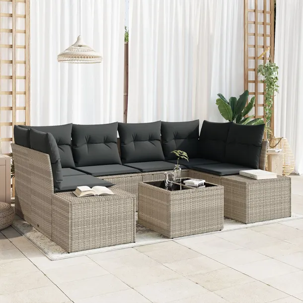 Zestaw sof ogrodowych 7 elementów z poduszkami Jasnoszary Rattan syntetyczn