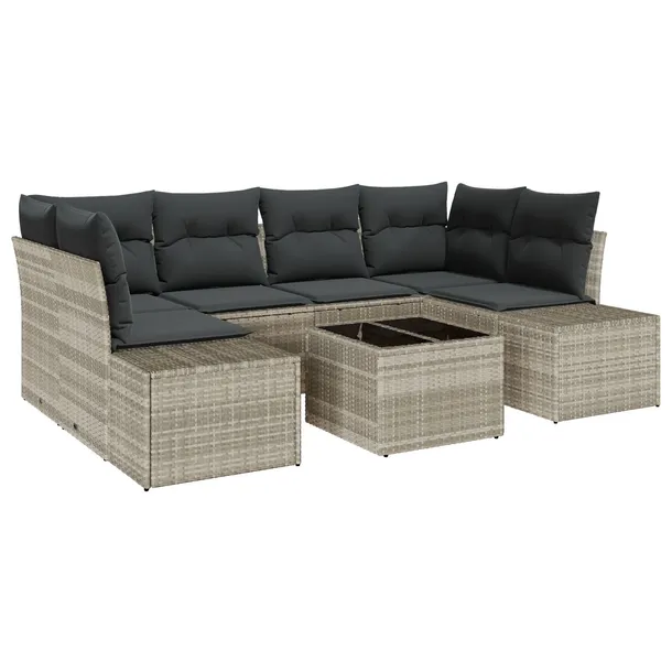 Zestaw sof ogrodowych 7 elementów z poduszkami Jasnoszary Rattan syntetyczny