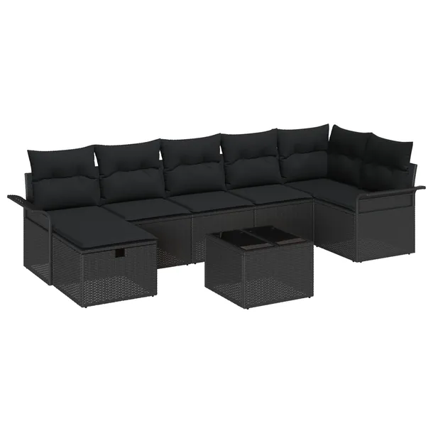 Zestaw sof ogrodowych 8-częściowy z poduszkami czarny polirattan