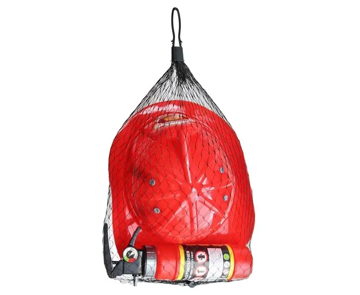 ZESTAW STRAŻAKA (GAŚNICA, HEŁM) W skład zestawu wchodzą: hełm strażaka oraz gaśnica Obwód głowy: ok. 53 cm (regulowany) Wysokość gaśnicy: 23 cm Materiał: plastik