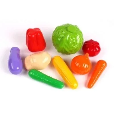Zestaw zabawkowy- warzywa. Wszystkie elementy zestawu wykonane są z mocnego, wysokiej jakości, bezwonnego tworzywa sztucznego.