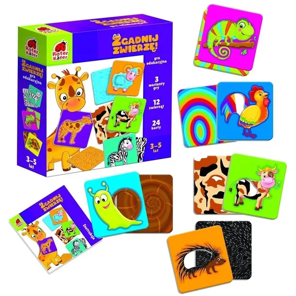 Komplet zawiera: 12 zwierząt, 24 karty.
