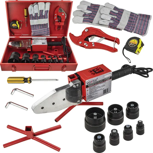 Zgrzewarka polifuzyjna przeznaczona jest do zgrzewania rur oraz kształtek wykonanych z tworzyw termoplastycznych, takich jak PP, PE czy PVC. Urządzenie umożliwia wykonywanie trwałych, szczelnych i estetycznych połączeń stosowanych w instalacjach wodnych, grzewczych oraz sanitarnych. Dzięki wysokiej mocy 2700 W zgrzewarka bardzo szybko nagrzewa matryce i błyskawicznie osiąga wymaganą temperaturę roboczą. Regulacja temperatury w szerokim zakresie 50–300°C pozwala na precyzyjne dostosowanie pracy urządzenia do danego rodzaju materiału. W komplecie znajduje się 7 matryc grzewczych pokrytych warstwą teflonu, która zapobiega przywieraniu tworzywa, gwarantując czyste i trwałe złącza. Całość zestawu umieszczona została w solidnej metalowej walizce, ułatwiającej transport i przechowywanie.