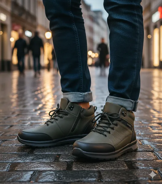 , idealne na chłodniejsze dni oraz wymagające warunki terenowe. Model ten łączy w sobie modny, miejski design z wysoką wygodą użytkowania, dzięki czemu sprawdzi się zarówno na co dzień, jak i podczas weekendowych wypadów za miasto. Głęboki, zielony kolor nadaje butom charakteru i pozwala wyróżnić się z tłumu, zachowując przy tym uniwersalność i łatwość łączenia z większością męskich stylizacji.