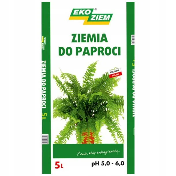 Ziemia specjalna do paproci firmy EKO-ZIEM- jest wyprodukowana z wysokiej jakości torfu wyso¬kiego, torfu niskiego, piasku, wapna, w celu regulacji pH, oraz nawozów wieloskładnikowych, dla wzbogacenia podłoża, w składniki pokarmowe, w odpowiednich dawkach, dla potrzeb tej grupy roślin. Skład mieszanki przyspiesza reakcję bio¬chemiczną, zapewniając pożądany efekt.