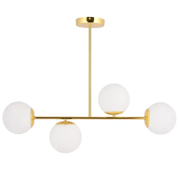 Złota Biała Lampa Wisząca Sufitowa Żyrandol z Mlecznymi Szklanymi Kulami w Stylu Loft E27