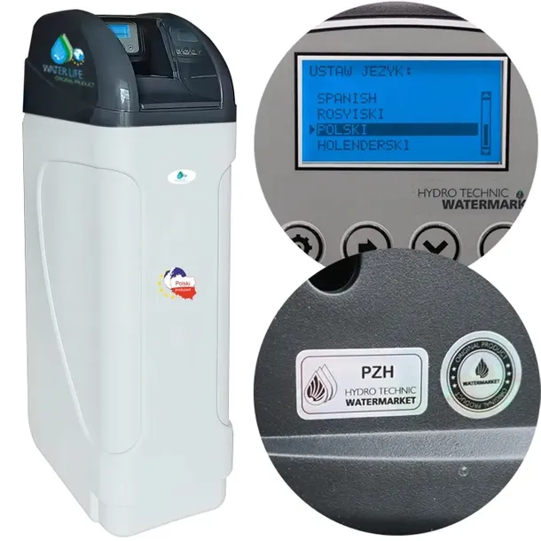 - wyposażone są w nowoczesny zawór sterujący: HYDRO PREMIUM z menu w języku polskim, który umożliwia pracę w oszczędnym trybie regeneracji UP-FLOW,