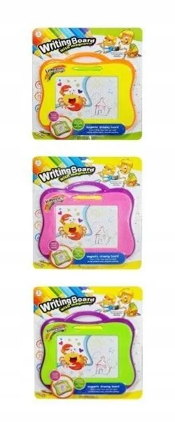 Tablica do pisania i rysowania. Znikopis posiada długopis. Malunki można łatwo usunąć, przesuwając suwak zmazujący. Produkt zapakowany w kartonowe opakowanie z przezroczystym okienkiem. Produkt dla dzieci od 3 lat. Podane wymiary są wymiarami opakowania.