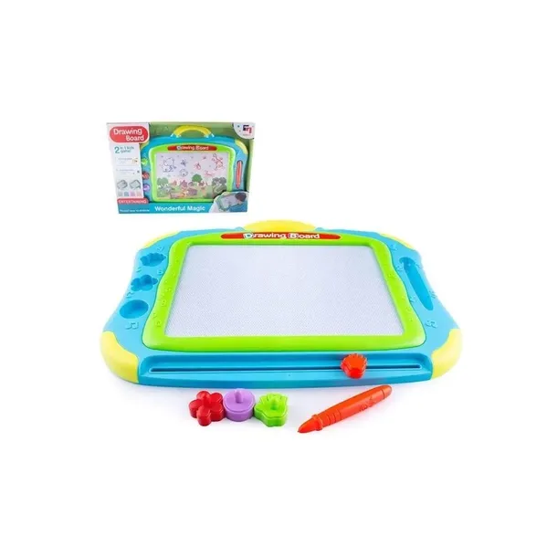 Znikopis to zabawka edukacyjna i idealny pomysł na kreatywną zabawę dla dziecka. Tablica magnetyczna - jak działa? Pod jej powierzchnią znajdują się opiłki, które podczas malowania na tablicy specjalnym długopisem układają się w rysunek. Namalowany obrazek możemy łatwo wymazać - wystarczy przeciągnąć specjalnym suwakiem, a rysunek zniknie i można narysować ponownie nowy. Doskonała zabawa połączona z elementem nauki. Dziecko ma możliwość ćwiczenia rysowania i pisania. W zestawie tablica, pisak pieczątki oraz szablony do rysowania.