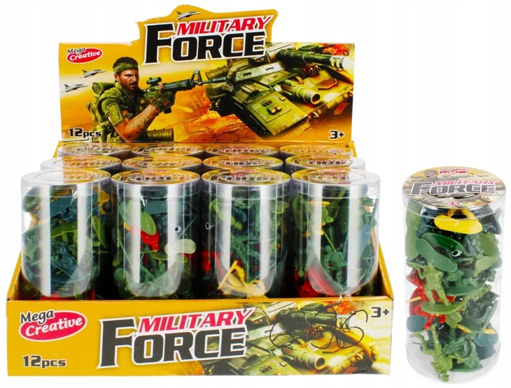 Zalety produktu: pobudza kreatywność dziecka oraz rozwija wyobraźnię, figurki w zestawie występują w czterech kolorach. Żołnierzyki to zabawka popularna od wielu pokoleń. Zabawa Zestawem Wojskowym MEGA CREATIVE chyba nigdy się nie znudzi Zawartość zestawu: 46 figurek żołnierzyków. Całość wykonana z plastiku. Wymiary/waga/baterie: wymiary produktu dł. cm : 5 cm, wymiary opakowania dł. x wys. x gł. cm : 7x16x7, waga produktu bez opakowania kg : 0,08 kg, waga produktu w opakowaniu kg : 0,10 kg, waga displaya kg : 1,46 kg, nie wymaga zasilania bateriami. Produkt przeznaczony dla dzieci w wieku: 3 . Zestaw pakowany w przeźroczystą tubę. Pakowany na displayu po 12 szt.