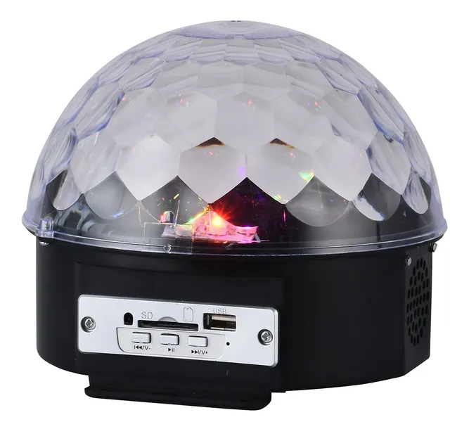 Kula dyskotekowa z wbudowanym odtwarzaczem MP3, czytnikiem kart SD, portem USB oraz wysokiej jakości głośnikami Stereo. Urządzenie jest sterowane przyciskami na panelu bądź z poziomu pilota zdalnego sterowania.