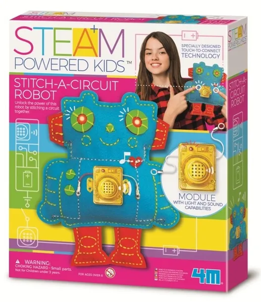Zobacz jak połączyć prace ręczne z nauką i odblokuj moc robota za pomocą igły i nitki! Zestaw pozwala na stworzenie filcowego robota, którego obwód zostanie zamknięty za pomocą specjalnej metalizowanej nici. To super zabawa i nauka w jednym!