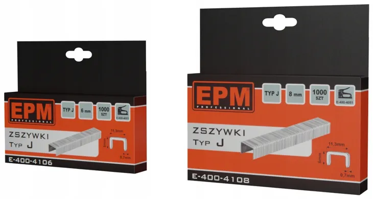 - zszywki typu „J” wykonane ze stali