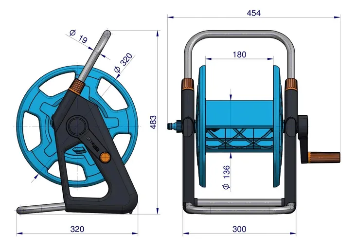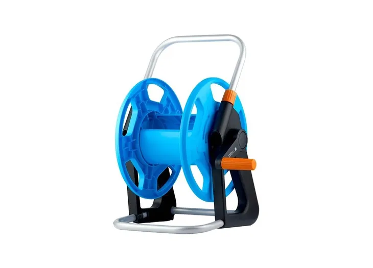 Zwijacz węża / TEGER / Wysokiej jakości stabilny i wytrzymały zwijacz na wąż ogrodowy. Pozwala na przechowywanie węża do 45 m długości. Przechowywanie ułatwia rączka a specjalny kształt podpórki gwarantuje doskonałą stabilizację. Kątowe połączenie węża zapobiega owijaniu się, załamywaniu lub skręcaniu podczas nawijania lub zwijania. Pojemność węża 1/2" (12,5 mm) / 45 m, 5/8"" (15 mm) / 30 m, 3/4"" (19 mm) / 20 m"