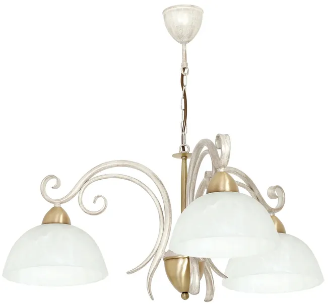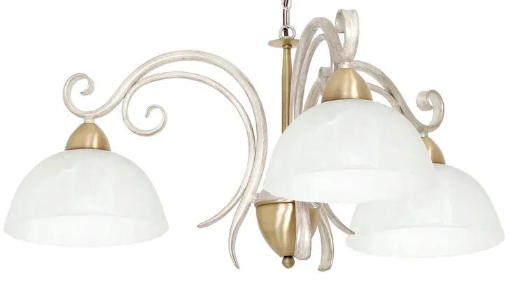 Żyrandol Aurora przystosowany pod trzy żarowki E27 max 15W. Produkt został wykonany z metalu w kolorze kremowo złotym. Lampa z możliwością regulacji wysokości. Klosz został wykonany ze szkła w kolorze białym. Produkt z ochroną szczelności IP20. Oprawa znajdzie swoje zastosowenie we wnętrzach w stylu klasycznym. Idealny dodatek do stworzenia prostej a zarazem ciekawej aranżacji naszego pomieszczenia. Oprawa posiada mosiądzowane elementy ozdobne. Produkt sprzedawany jest bez żarówek. Wymiary produktu wynoszą: 70 cm wysokości, 74 cm szerokości oraz 74 cm długości. Produkt sprzedawany jest bez żarówek.