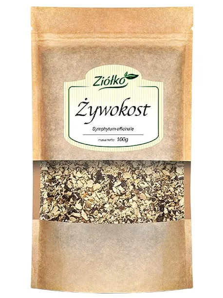 Żywokost 100g posiada właściwości przeciwzapalne i przeciwbólowe, jest stosowany w leczeniu różnego rodzaju dolegliwości, związanych z układem kostno-stawowym i skórą.